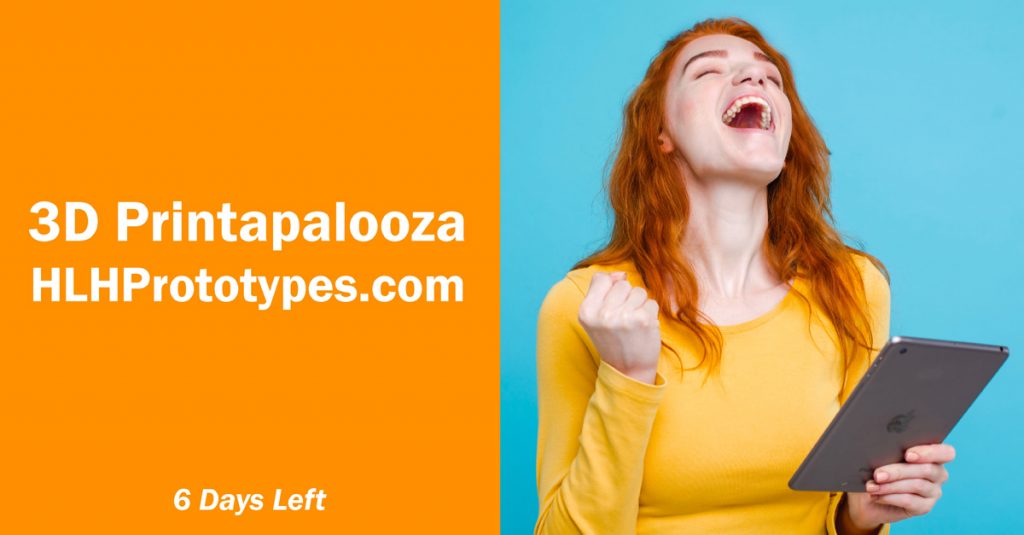 PrototypesFreeQuote@HLHPrototypes.com to start your 3D Printapalooza print job today. There are only 5 days left in 3D Printapalooza at HLH, so don't miss out. Fantastic quality, pricing,...