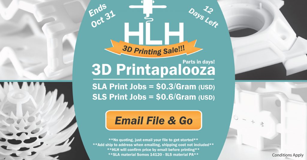 PrototypesEmail FreeQuote@HLHPrototypes.com to send your 3D Printing Job to HLH. 3D Printapalooza is here until the end of October. Check out our quick mini blog about SLS Parts...