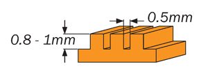 Slots – effected by depth or thickness of the wall, ≥ 0.5mm is minimum but will fail to print if the depth or wall thickness is over 2mm.