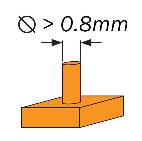 Pins – standard tolerance is +/- 0.3mm so any features with dimensions below this are unlikely to be printed without issue. So pins should be designed ≥ 0.8mm.