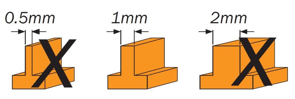 Slots – effected by depth or thickness of the wall, ≥ 0.5mm is minimum but will fail to print if the depth or wall thickness is over 2mm.