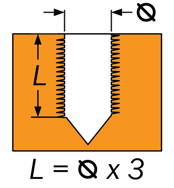For the size of threads a minimum of M2 should be observed with HLH’s recommendation of M6 or larger. HLH can accommodate and cut a range of different thread types, most common are metric threads, but imperial UNC and UNF, pipe threads and other standards are also achievable with a preference for metric.